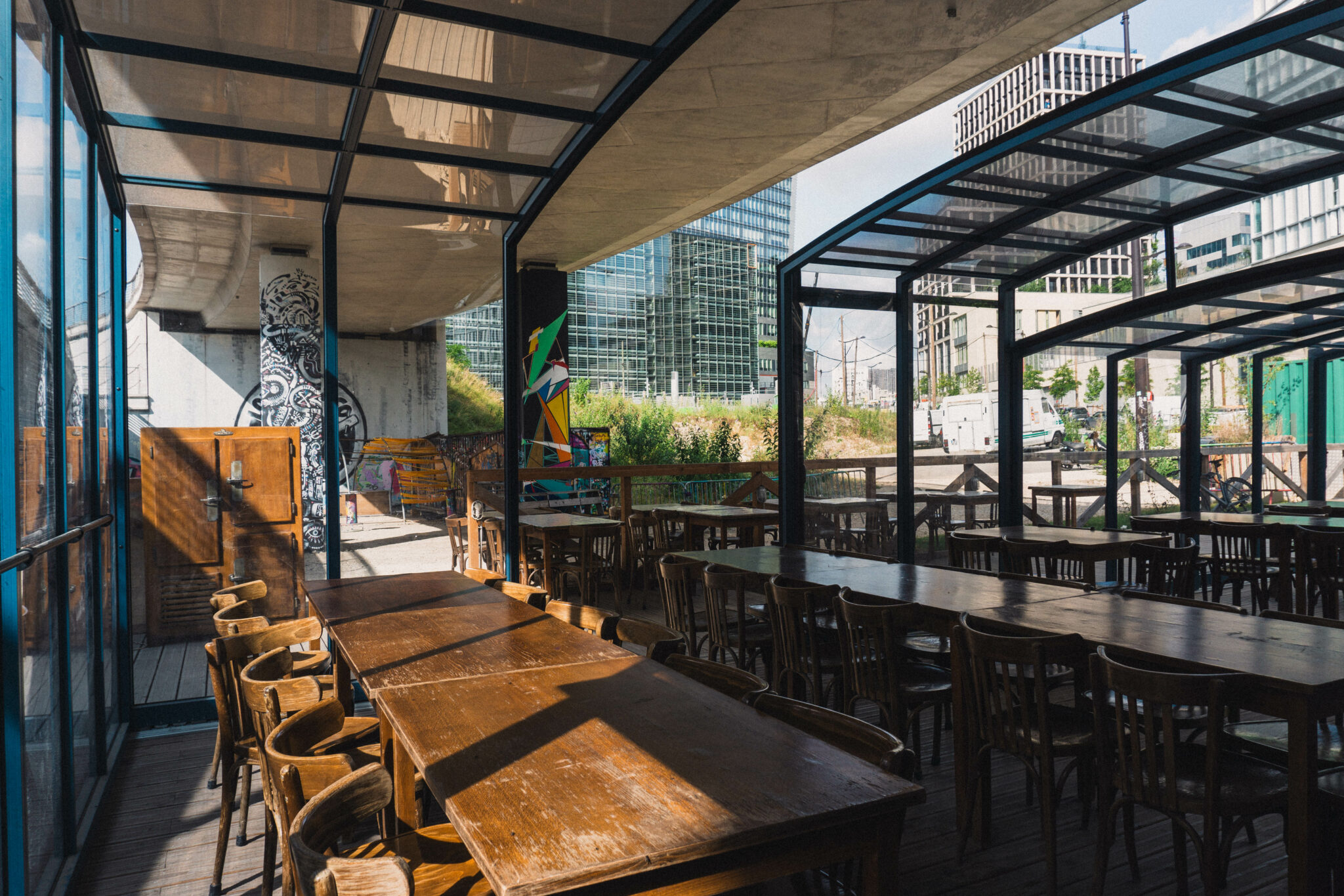 On pourrait en parler des heures, mais le mieux c’est de passer. La bretelle est ouverte tous les jours, vous pouvez venir y boire un coup, manger ou danser et ainsi parcourir par la même occasion cette belle allée Paris Ivry qui reprend vie.